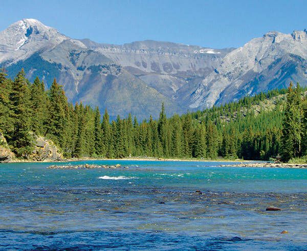 Travel to Banff, a glamorous resort town inside the eponymous national park known for its mix of outdoor activities, art galleries, and take-your-breath-away sights.